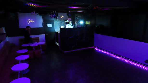 小岩と並ぶ江戸川区指折りの歓楽街・葛西。葛西駅西通りから少し入った駅チカの好立地に店を構える「Glitter グリッター」は、毎夜ディスコフリークが集う2015年開店の人気DJバーである。